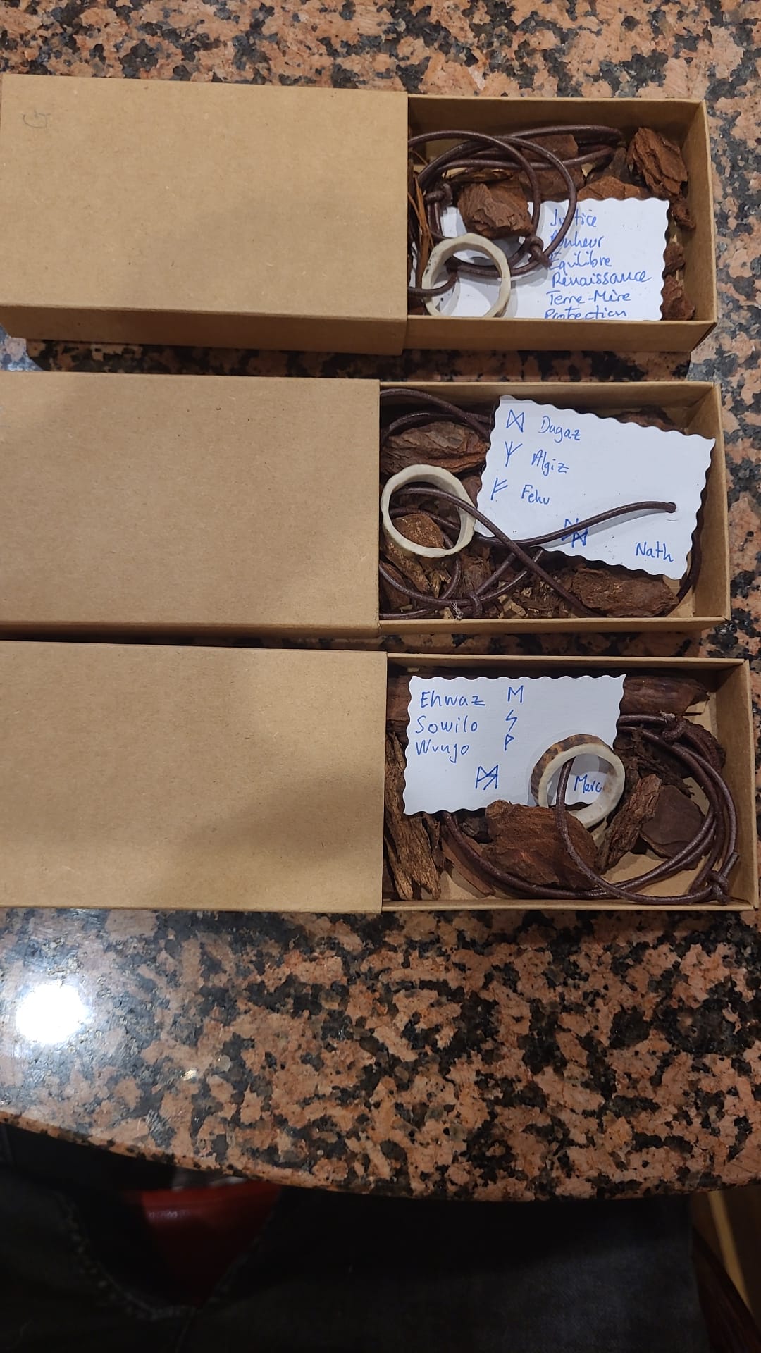 Ci-dessous, vous allez pouvoir passer commande pour vos colliers, bagues, bracelets, créations en cuir, en bois, bougies, etc.