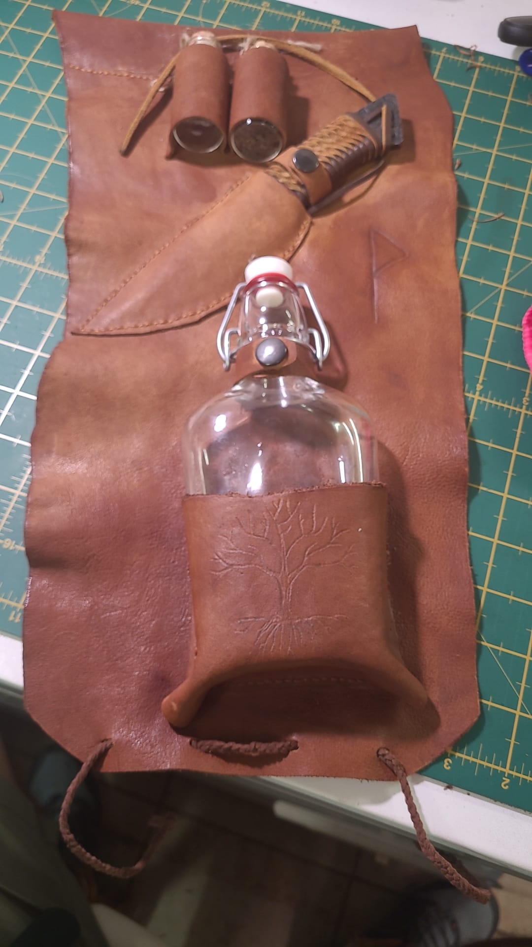 Les matériaux comme les dessous de verre, les fioles à herbes, les bouteilles, les boucles et accesssoires pour le cuir sont soit achetés en magasin, soit commandés sur internet. J’essaie de favoriser un maximum la proximité.